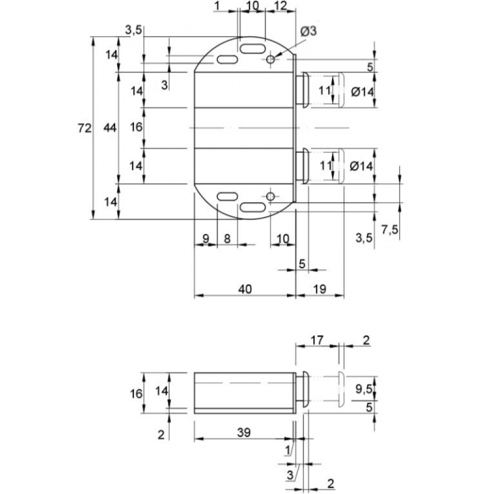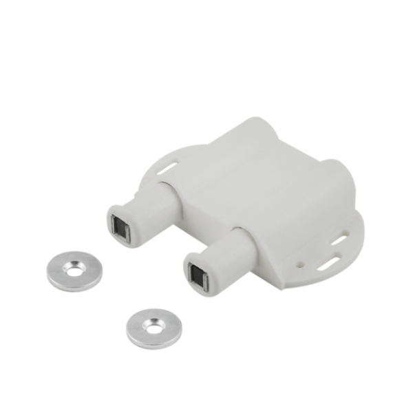 Відстріл накладний на магніті білий подвійний - це виштовхувач який використовується для відкривання дверного фасаду без ручок, за допомогою одного натискання.