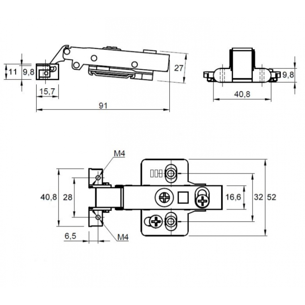 Петля Muller Profi Line накладна 95° Clip-On для алюмінієвого профілю з доводчиком (MP0028)