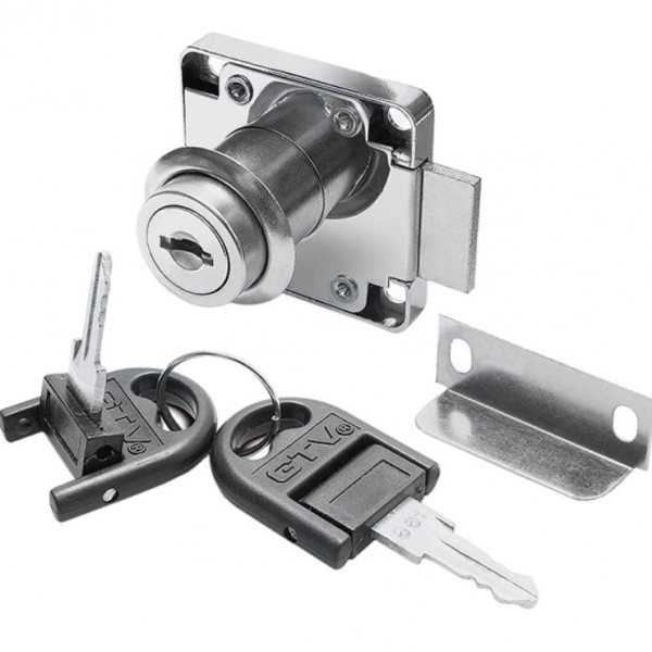 Замок GTV 138 зі складним ключем - функціональний виріб, що використовується для замикання меблевих ящиків та дверей. Відмінна риса даної моделі замка – доладний ключ (завдяки рухомому елементу, можна змінювати кут нахилу стрижня ключа). До набору входить: замок – 1 шт.; планка у відповідь – 1 шт.; ключ – 2 шт.