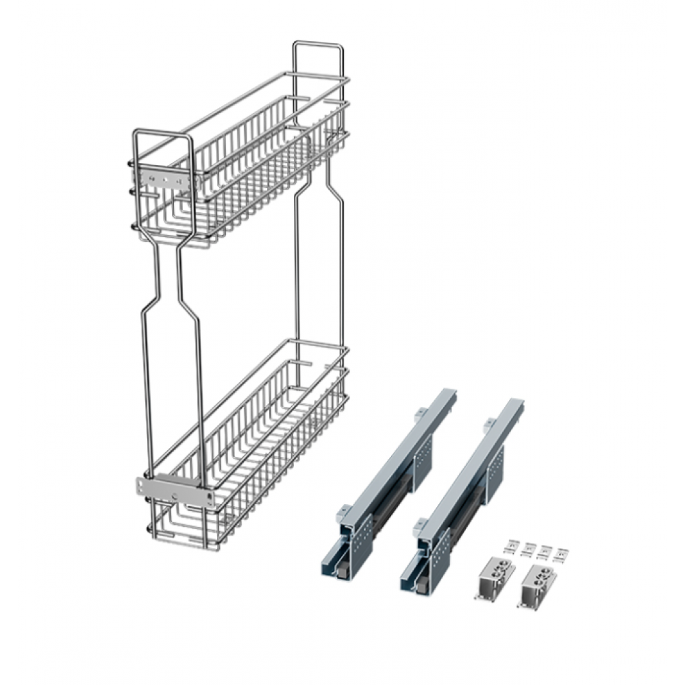 Висувний кошик Карго MÜLLER 200 мм для кухні бічне праве з доводчиком Хром (2 полиці) (SO0886)