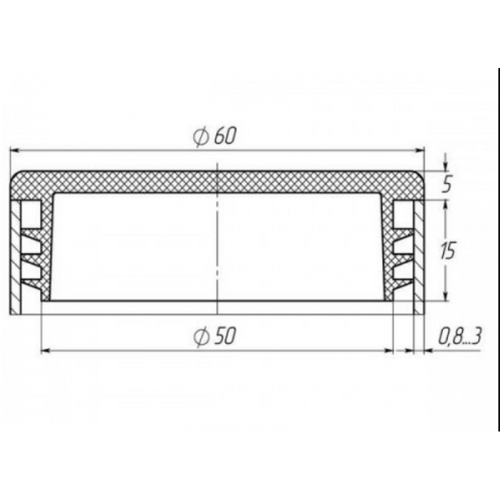 Заглушка кругла діаметром 60 мм підходить для труби з круглою формою перерізу з товщиною стінки 0,8 – 3 мм.