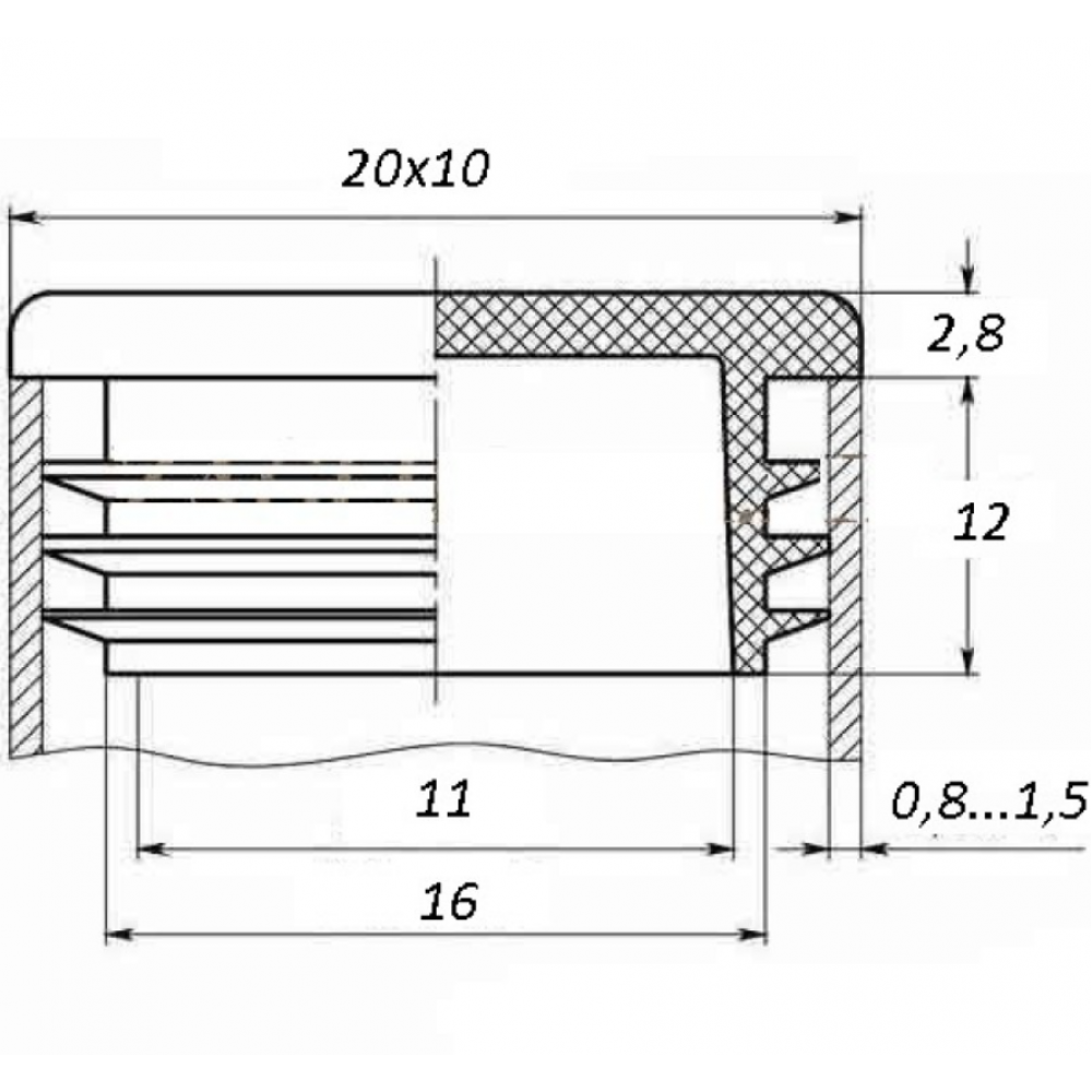 Заглушка прямокутна 10мм x 20мм підходить для труб із товщиною стіни 0,8 - 1,5 мм.