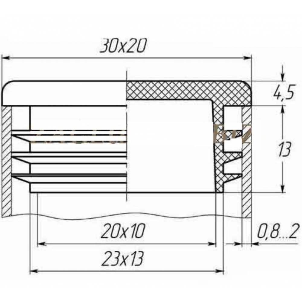 Заглушка прямокутна 20мм x 30мм підходить для труб із товщиною стіни 0,8 - 2 мм.