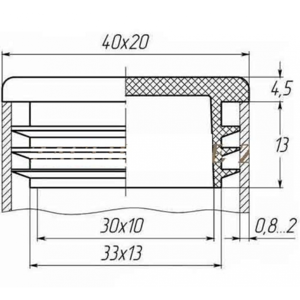 Заглушка прямокутна 40мм x 20мм підходить для труб із товщиною стіни 0,8 - 3 мм.