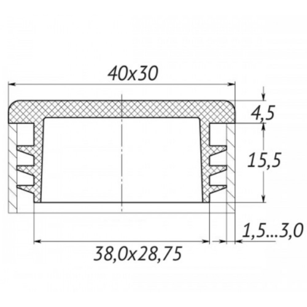 Заглушка прямокутна 30мм x 40мм підходить для труб із товщиною стіни 1,5 - 3 мм.