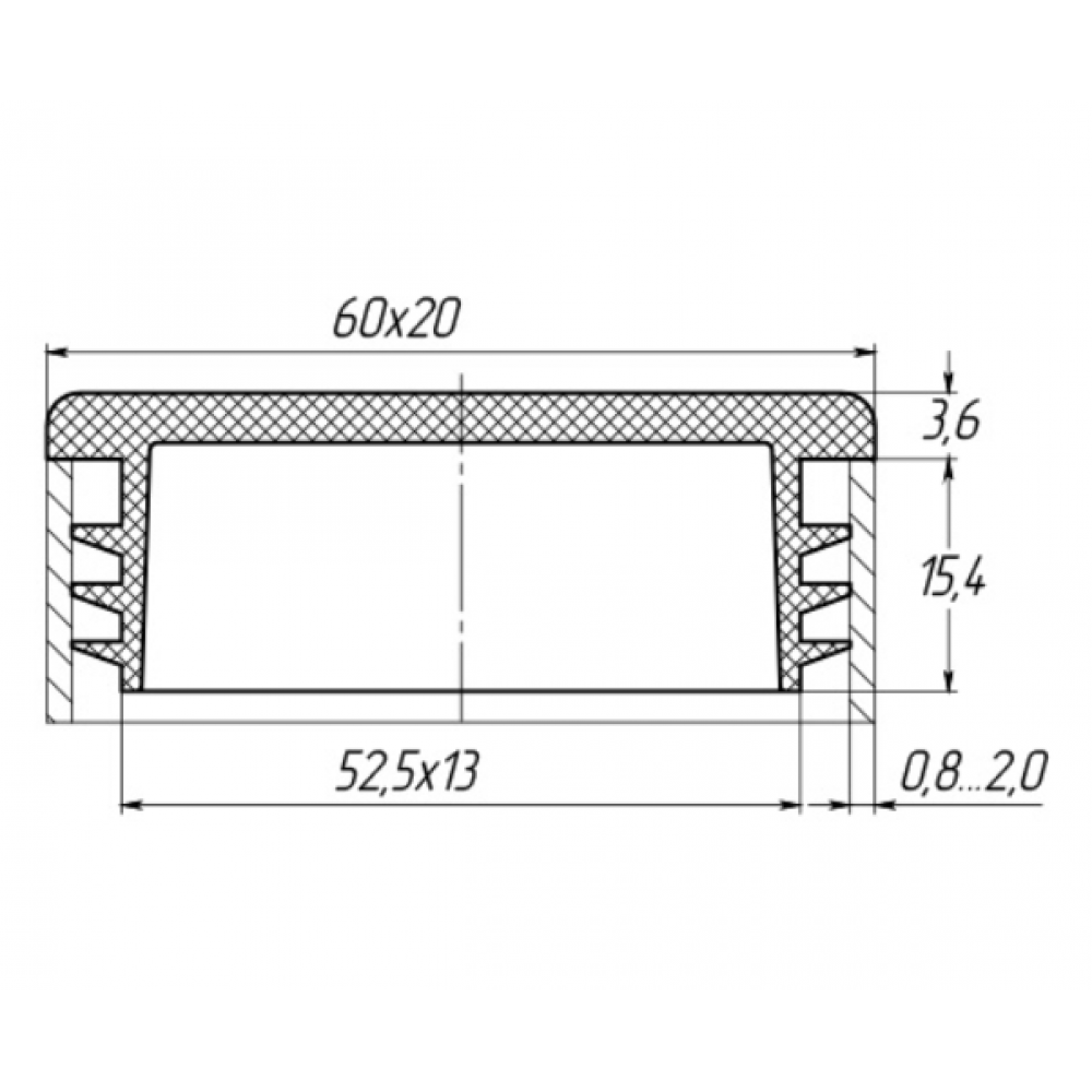 Заглушка прямокутна 40мм x 60мм підходить для труб із товщиною стіни 0,8 - 2 мм.
