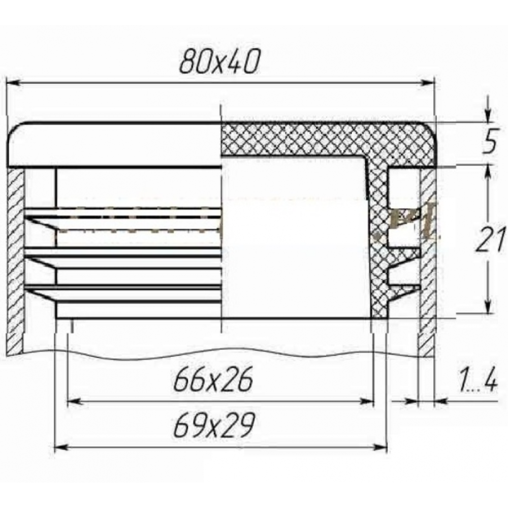 Пластикова заглушка 40мм x 80мм підходить для труб із товщиною стіни 1 - 4 мм.