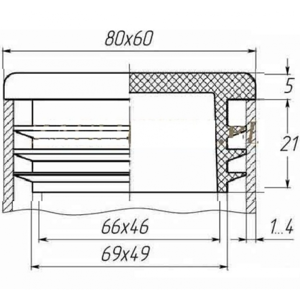 Заглушка прямокутна 60мм x 80мм підходить для труб із товщиною стіни 1 - 4 мм.