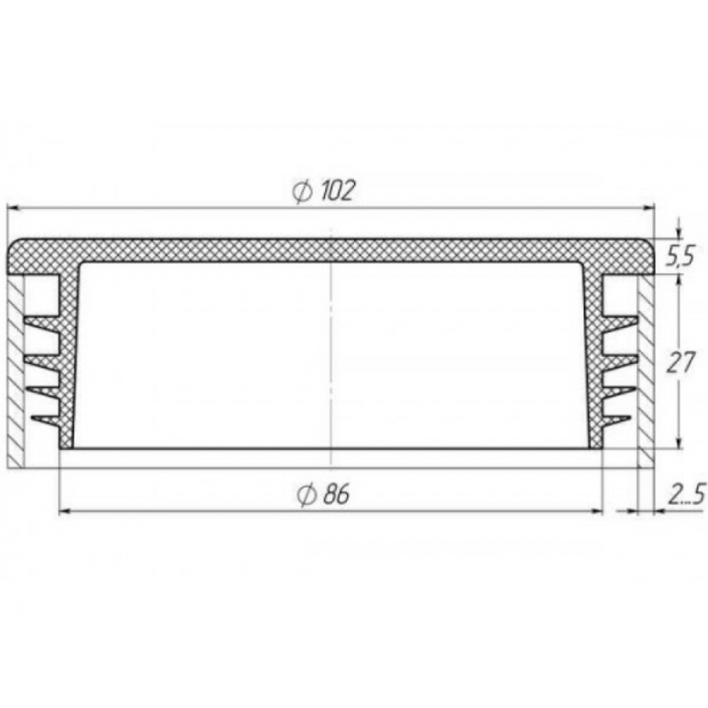 Кругла заглушка діаметром 102 мм підходить для труби з круглою формою перерізу з товщиною стінки 2 – 5 мм.