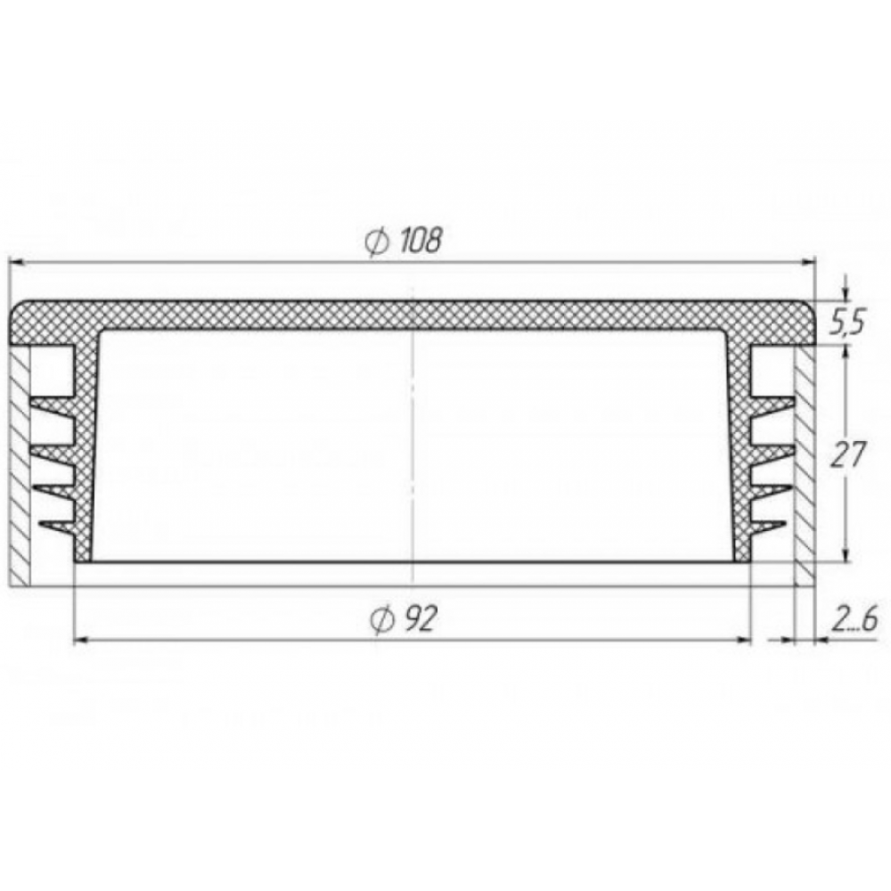 Заглушка кругла діаметром 108 мм підходить для труби з круглою формою перерізу з товщиною стінки 2 – 6 мм.