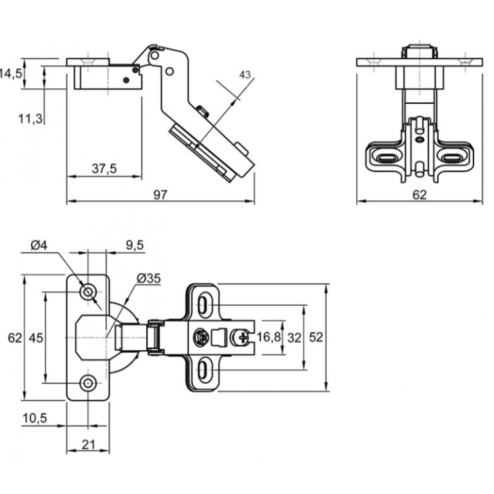 Slide-On Прикручування саморізами Фрезерування під чашку