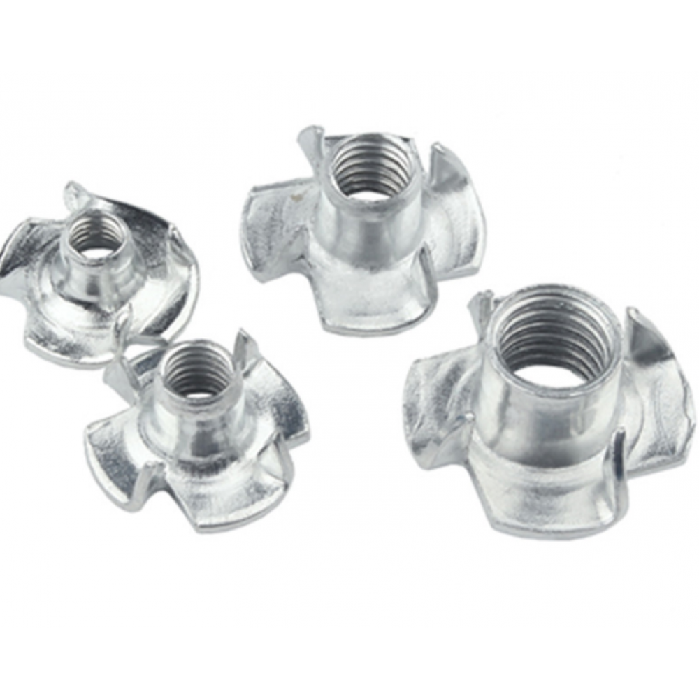 Гайка меблева забивна застосовується при виробництві меблів для з'єднання елементів за допомогою гвинтів у потай. Вона має спеціальні зубці, що запобігають її провертанню, що дозволяє проводити монтаж з обного боку. Перед встановленням гайки необхідно просверлити отвір.